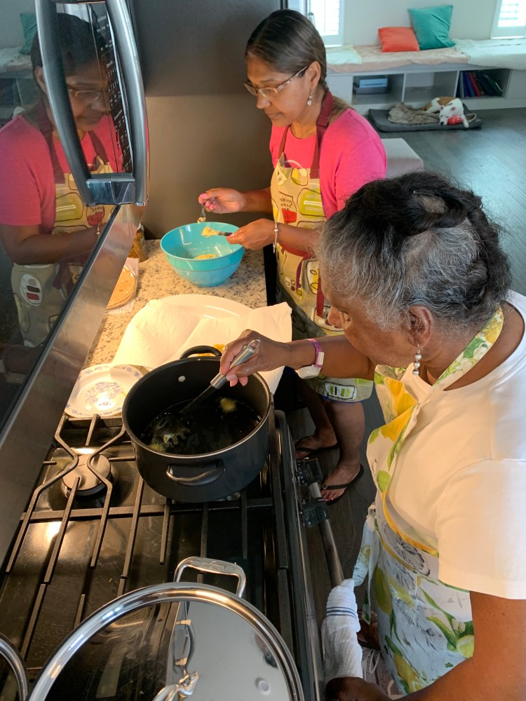 Above are my Mom and sister, Shazmin, making phoulourie, an Indian appetizer served with tamarind chutney and used often after prayer meetings. Later that evening, we joined other family members and celebrated Mom’s oldest sister’s 87th birthday via Zoom. That was a great success!!